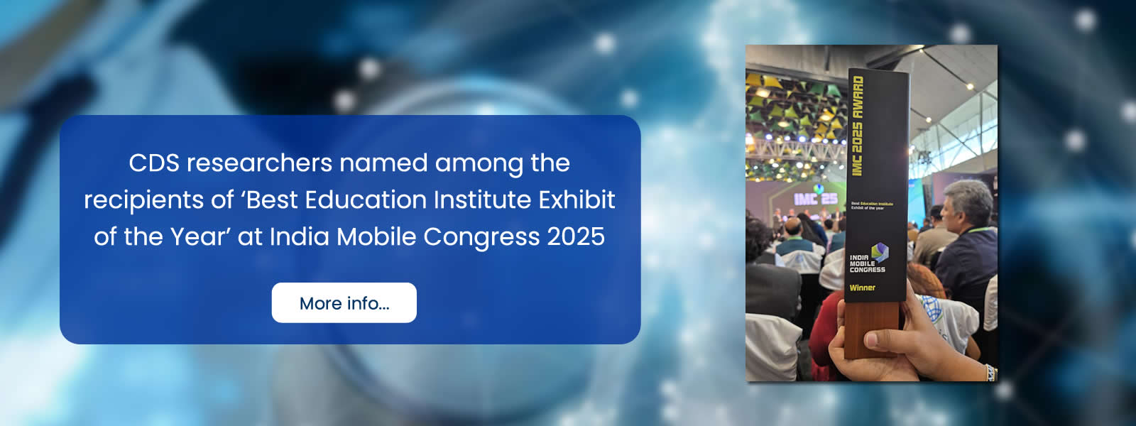 The department (CDS) offers two degree programs through research, Ph.D. and M.Tech. (Research). Research activities at CDS are broadly categorized into two streams: Computational Science and Computer & Data Systems.